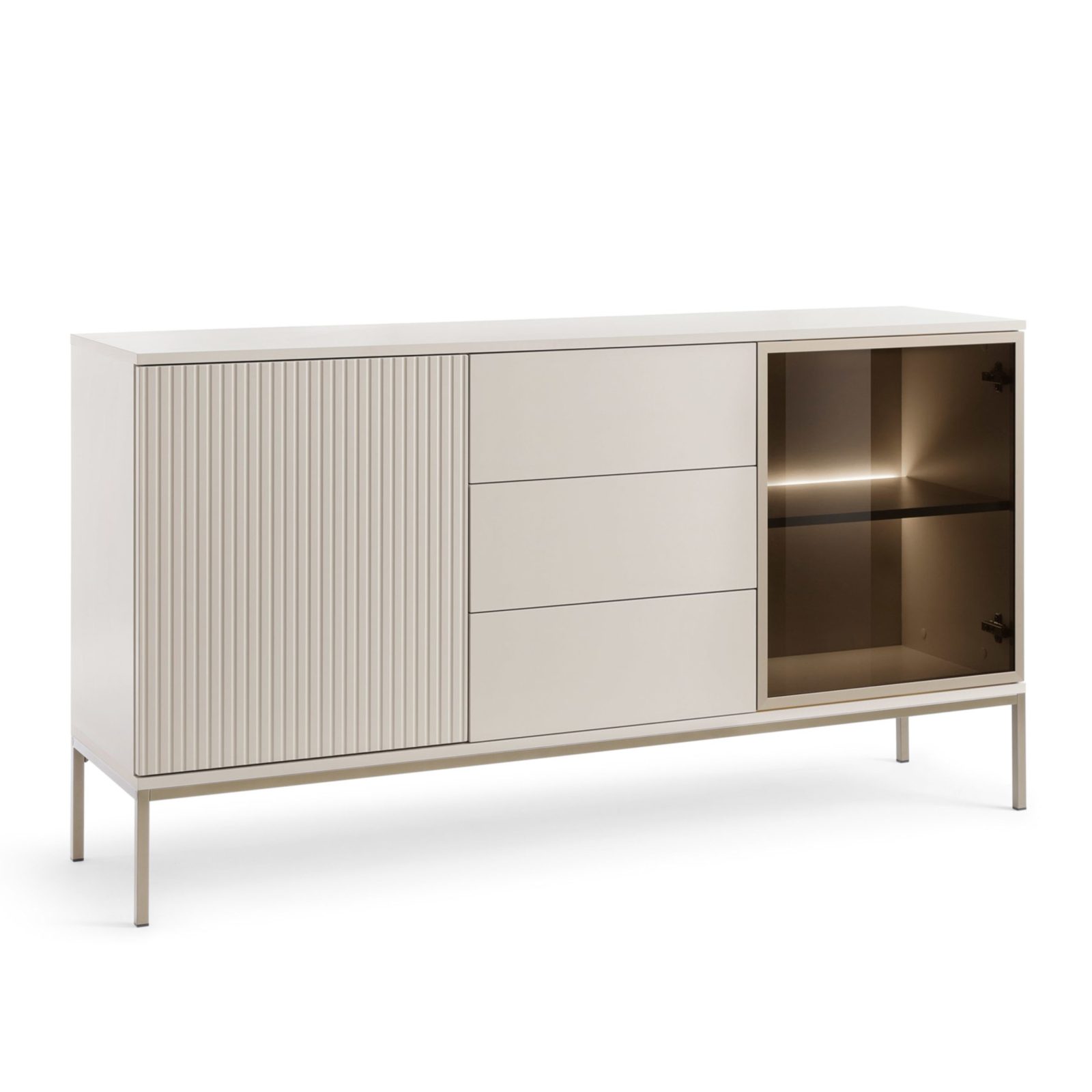Laval K104 LED – dreitürige Kommode mit Beleuchtung, Kaschmir, Breite 104 cm, Höhe 83 cm, Tiefe 39 cm
