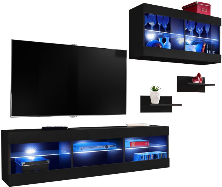 Tivoli Medio RTV Möbel Set, Schwarz/Schwarz