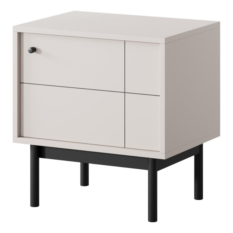 Nachttisch DIEPPE – Kaschmir – Metallgriffe – Holzbeine – Breite 56 cm, Höhe 56 cm, Tiefe 39 cm