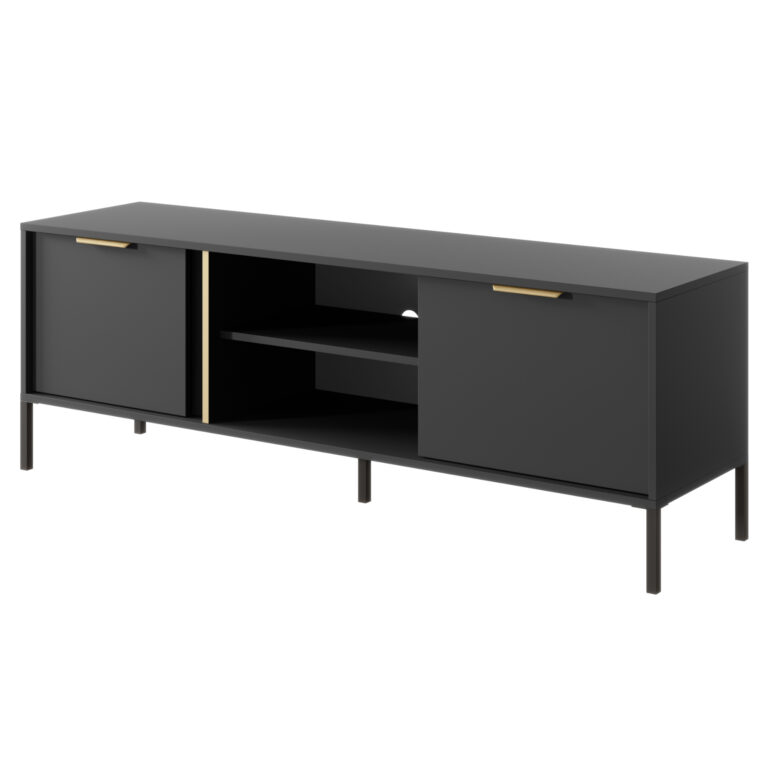 TV-Lowboard ORILLIA – Schwarz – Gefräste Fronten – 1 Schublade – Breite 180 cm, Höhe 51 cm, Tiefe 38 cm