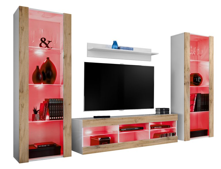Tivoli Grande RTV-Möbelset, Wotan/Weiße LED-RGB-Beleuchtung