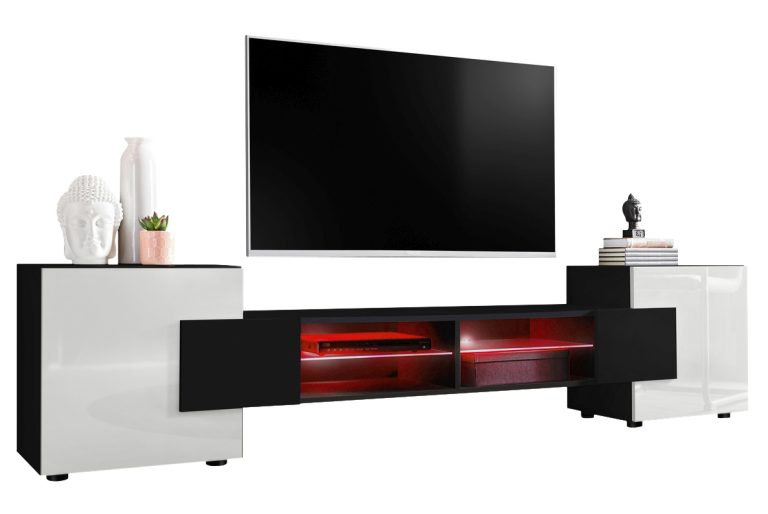 TV Schrank Merano, schwarz/weiße, RGB-LED-Beleuchtung