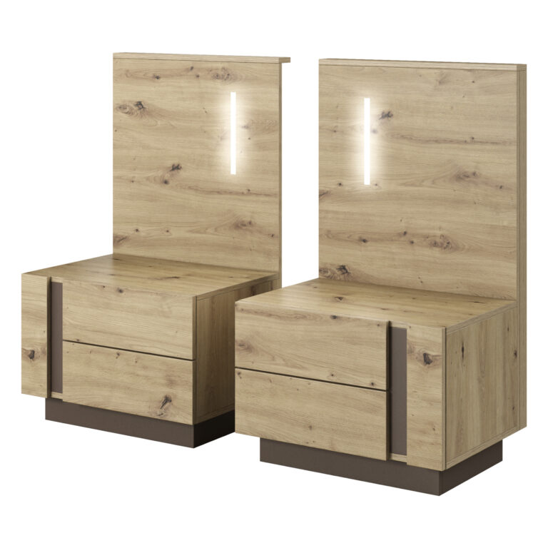 Nachttisch AMOS – Eiche – Abgerundet – Sanftes Schließen – 1 Schublade – Breite 58 cm, Höhe 52 cm, Tiefe 39 cm