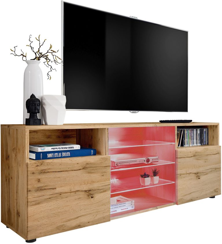 TV Schrank Merano, Wotan/Weiß LED Beleuchtung Blau