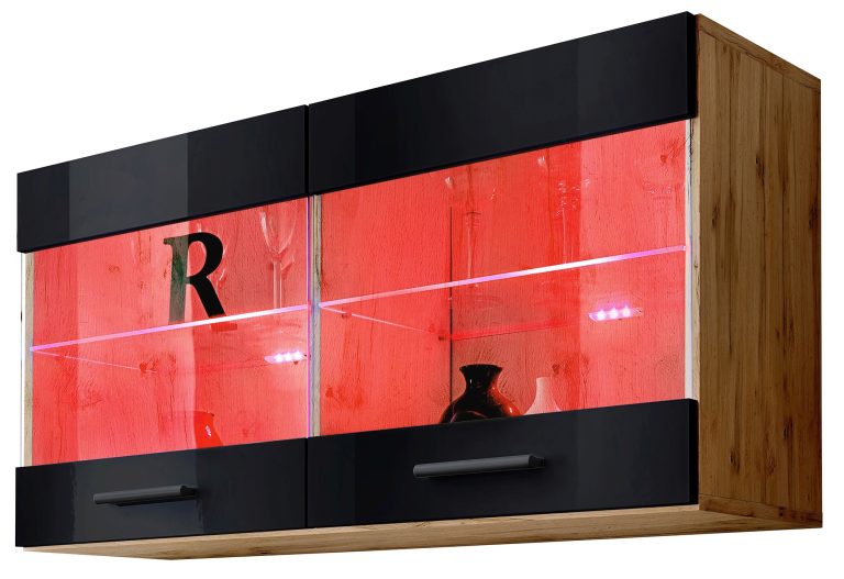 Savona Hängendes Regal, Schwarz/Wotan RGB LED Beleuchtung
