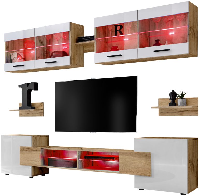 Foggia RTV Möbel Set, Weiß/Wotan RGB LED Beleuchtung