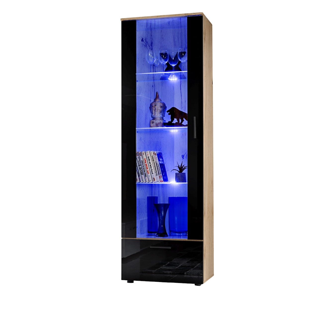 Alessandria Stehendes Display, Schwarz/Wotan LED-Beleuchtung Blau