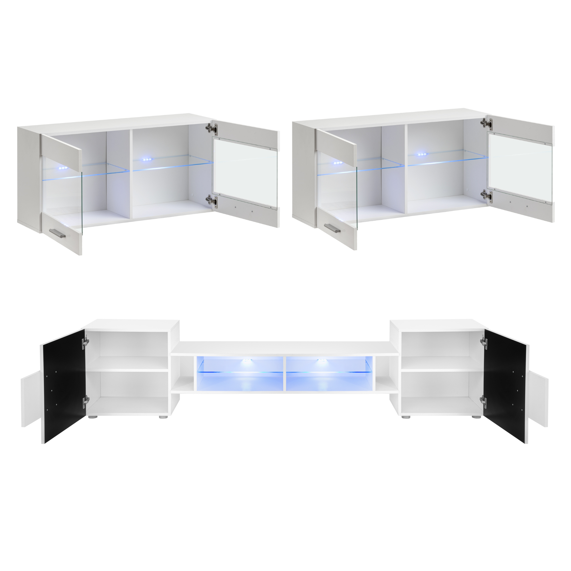 Foggia RTV Möbel Set, Weiß/Weiß LED-Beleuchtung Blau