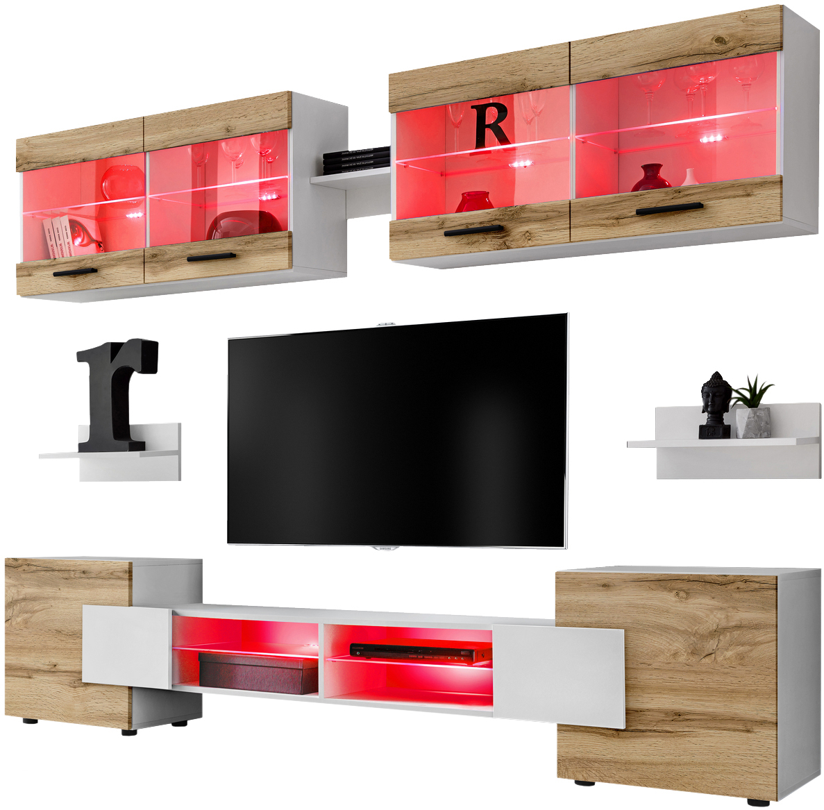 Foggia RTV Möbel Set, Wotan/Weiß RGB LED Beleuchtung