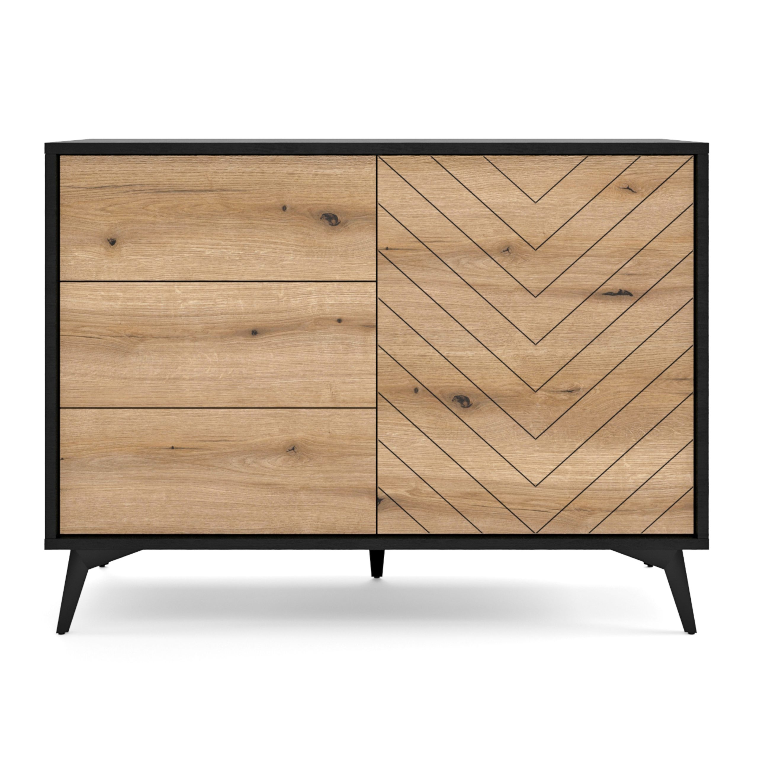 Jasper KSZ104 Kommode – Kommode, Evoke Eiche, schwarz, Breite 104 cm, Höhe 77 cm, Tiefe 39 cm