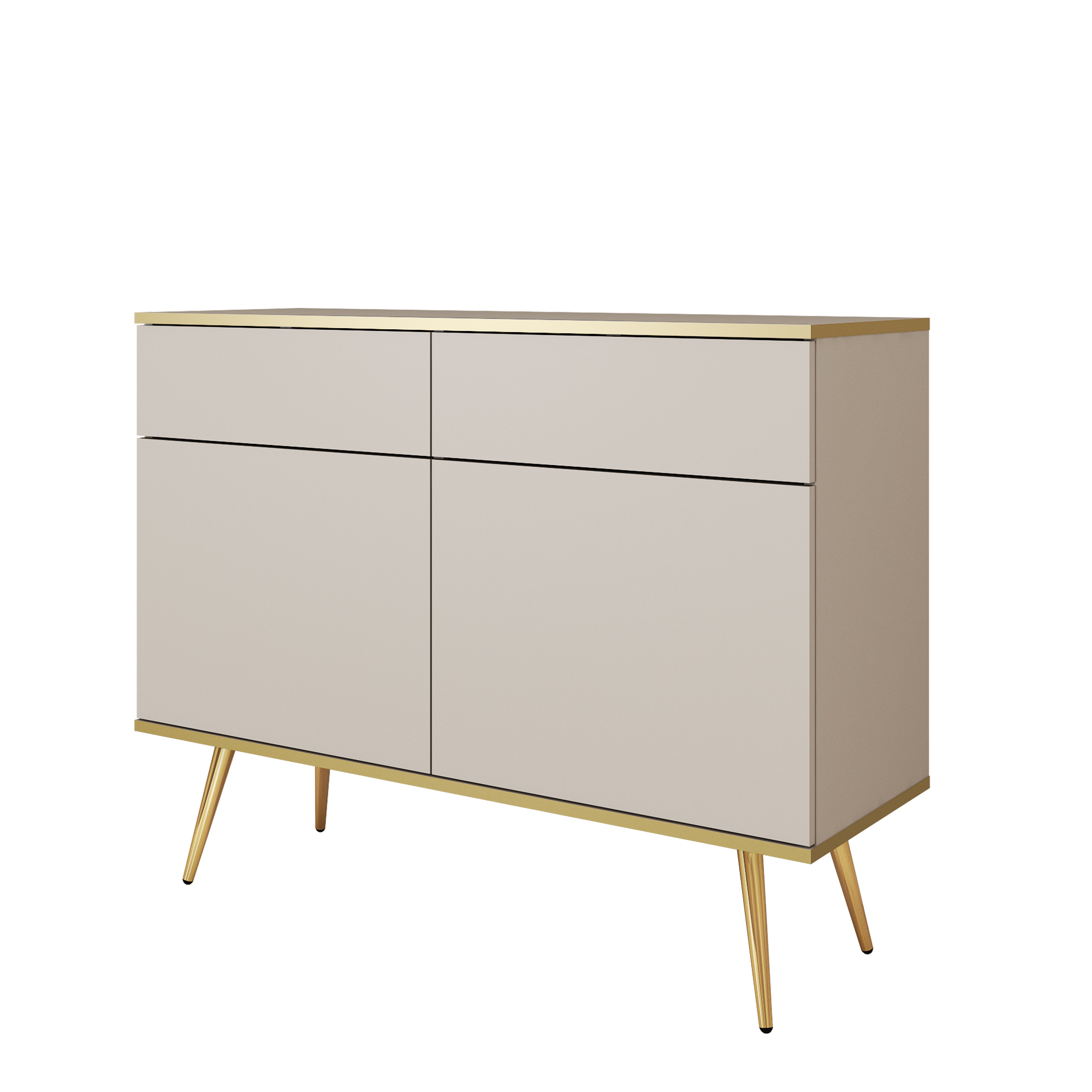 Kommode Banff KSZ107 – Beige – Goldene Beine – 2 Schubladen – Breite 107 cm, Höhe 85 cm, Tiefe 39 cm
