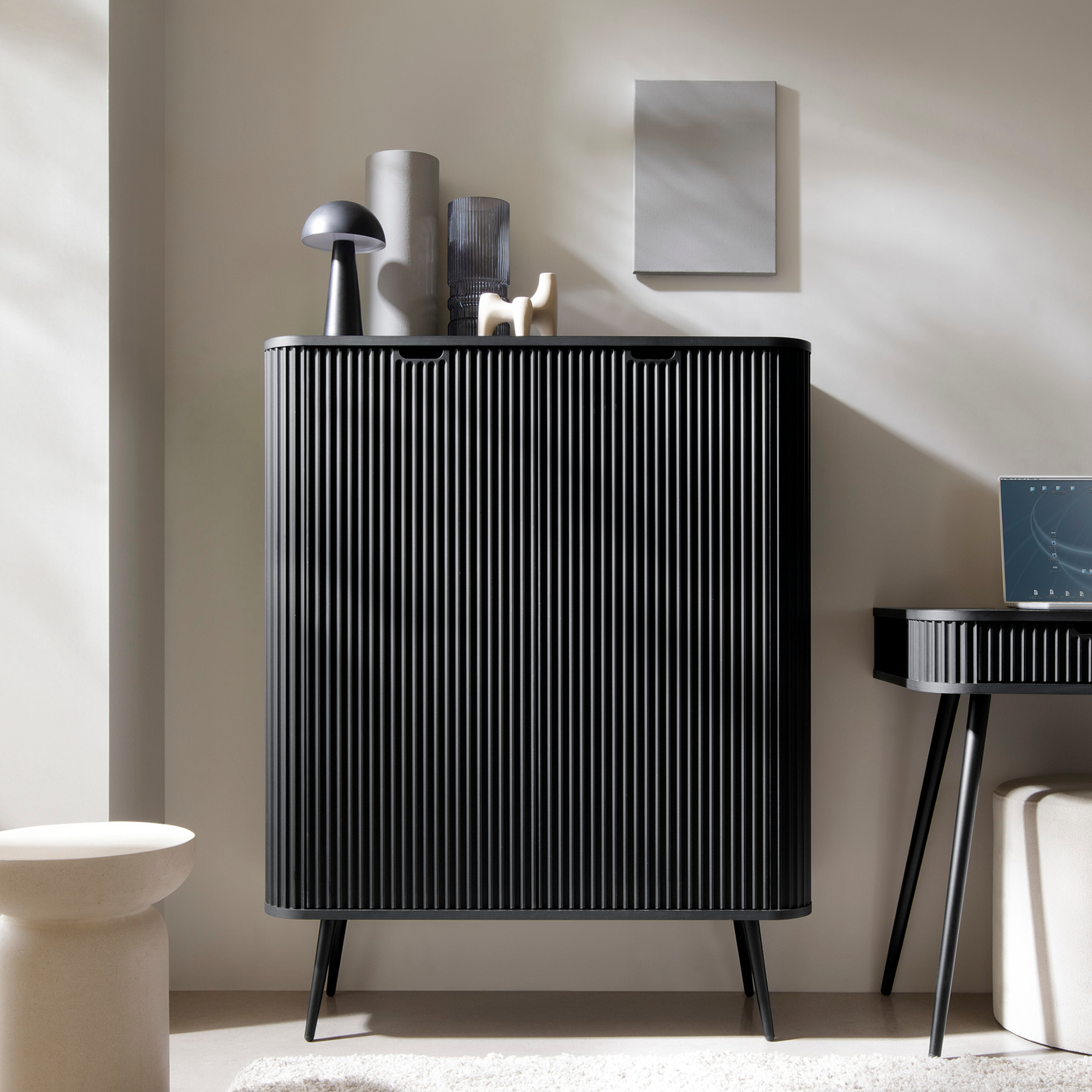 Kommode MORDEN K103 – Schwarz – Riffel-Fronten – Breite 103 cm, Höhe 129 cm, Tiefe 39 cm