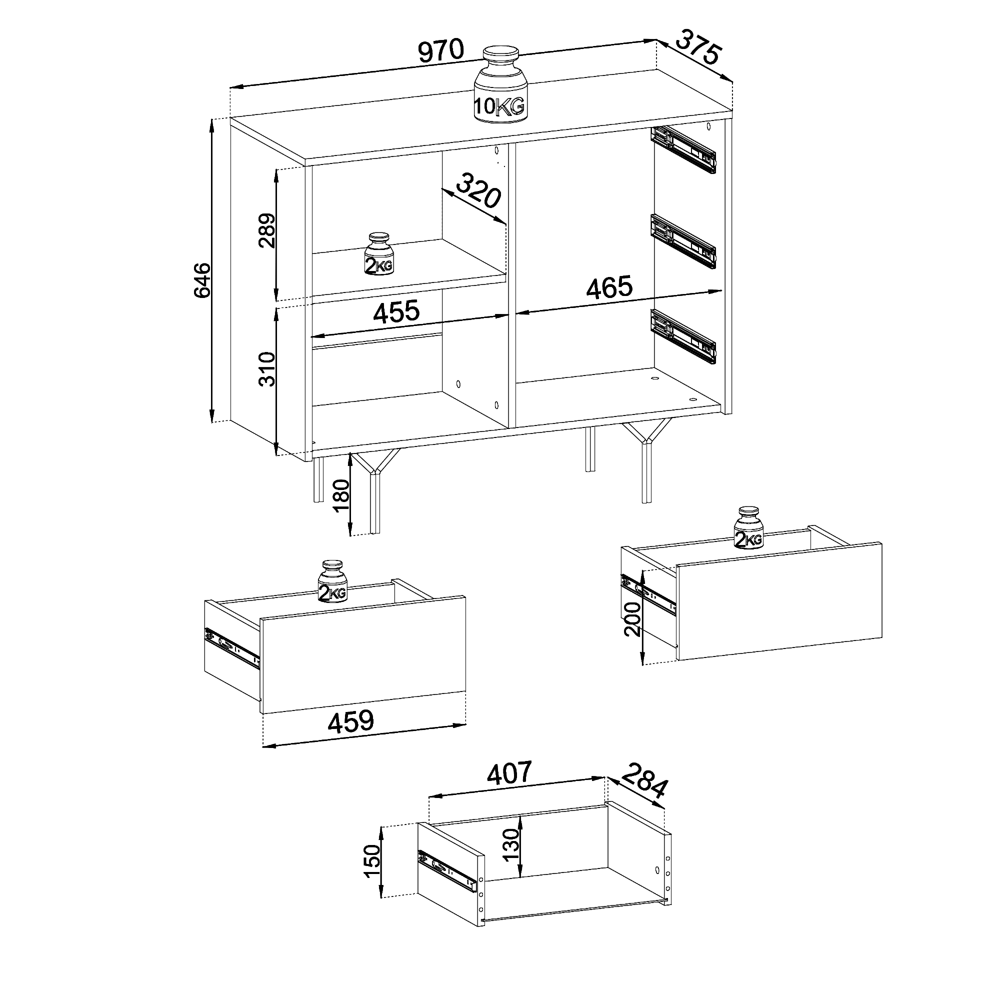 Ausgestattet mit einem geschlossenen Schrank mit Regal und drei geräumigen Schubladen bietet die Kommode ORILLIA viele Aufbewahrungsmöglichkeiten – von Dokumenten und Textilien bis hin zu Geschirr oder täglichen Accessoires. Mit dieser Anordnung kannst du mühelos all deine Dinge sortieren und Harmonie und Ordnung im Raum bewahren.