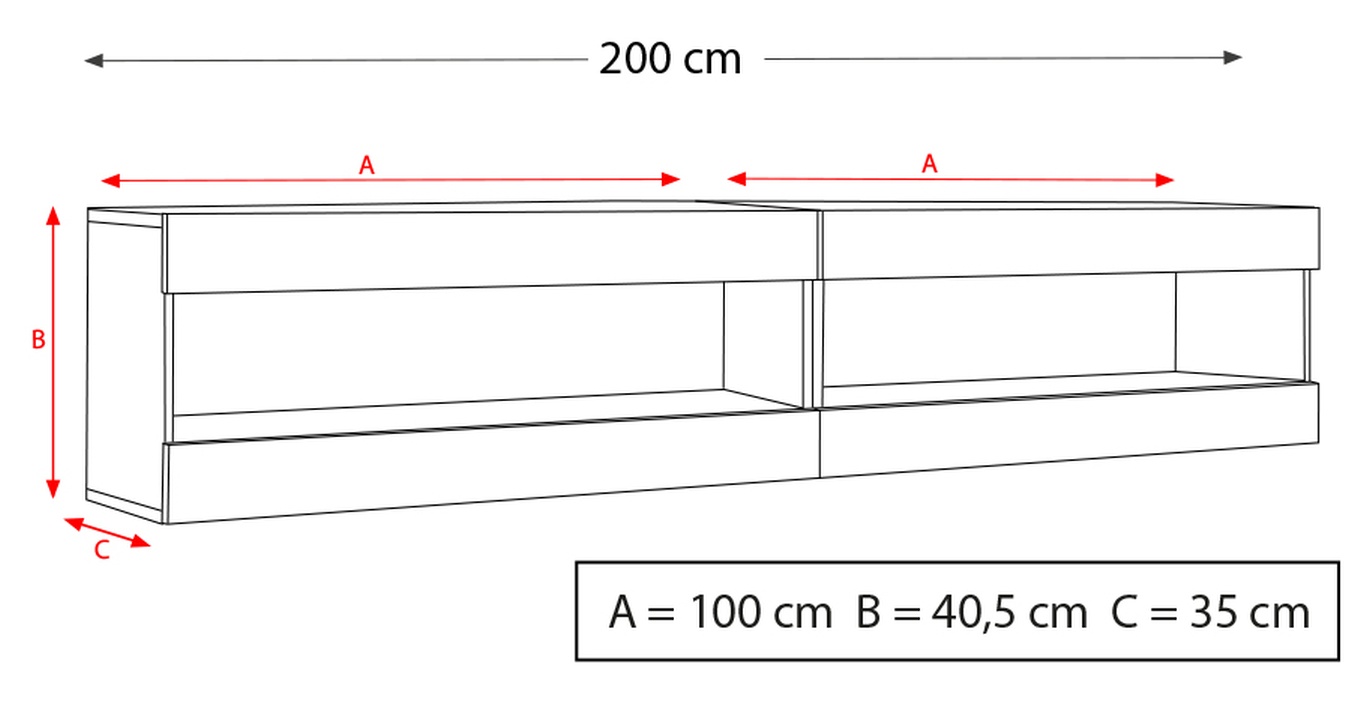 2× Hängeschrank für den Fernseher: Breite 100 cm × Höhe 36 cm × Tiefe 35 cm