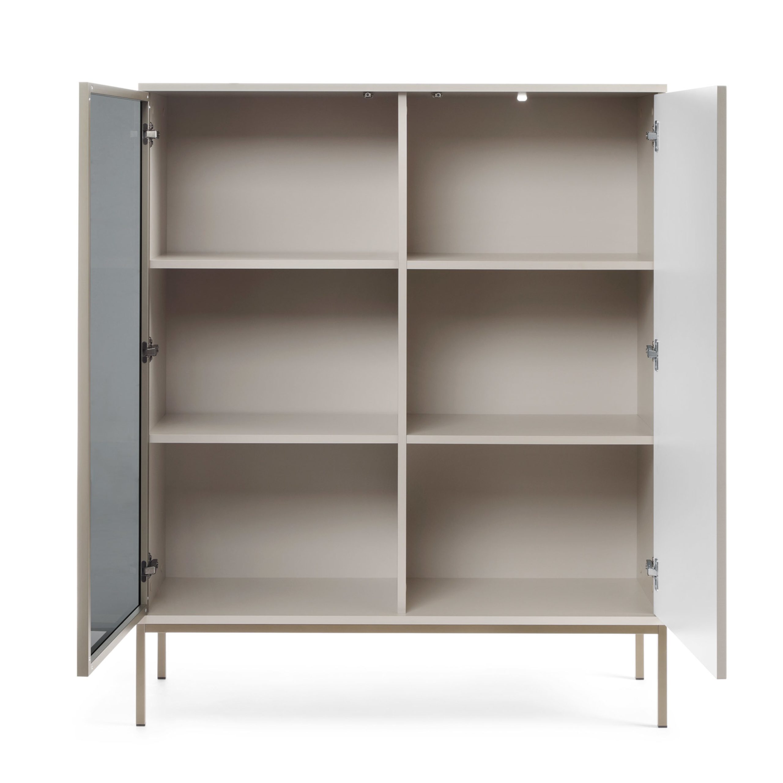 Der Laval WT104 Glastürschrank ist ein modernes Möbelstück, das die Eleganz von Schwarz mit der Wärme des Wotan-Eichendekors verbindet. Seine geometrische Form und seine ästhetischen Proportionen machen ihn zur idealen Wahl für stilvolle Wohn- und Esszimmer. Der obere Teil ist mit einer Glasvitrine mit LED-Hintergrundbeleuchtung ausgestattet, die Glas, Keramik oder Dekorationen effektiv in Szene setzt. Der niedrigere, geschlossene Raum ermöglicht es Ihnen, Alltagsgegenstände zu verstauen und gleichzeitig Ordnung zu halten. Grifflose Fronten und ein leicht erhabenes Design unterstreichen den minimalistischen Stil der Laval-Kollektion.