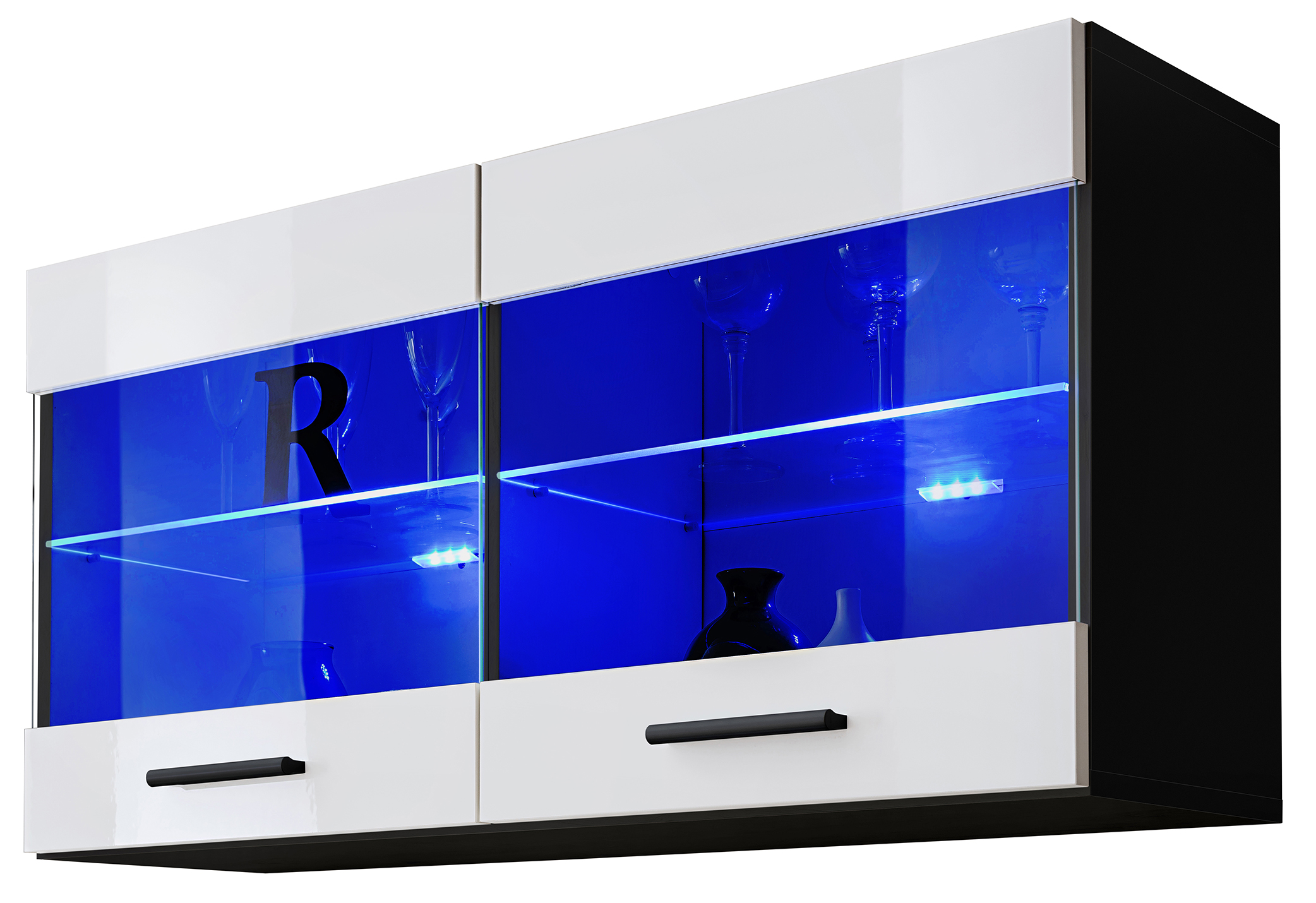 Savona Hängendes Regal, Weiß/Schwarz LED Beleuchtung Blau