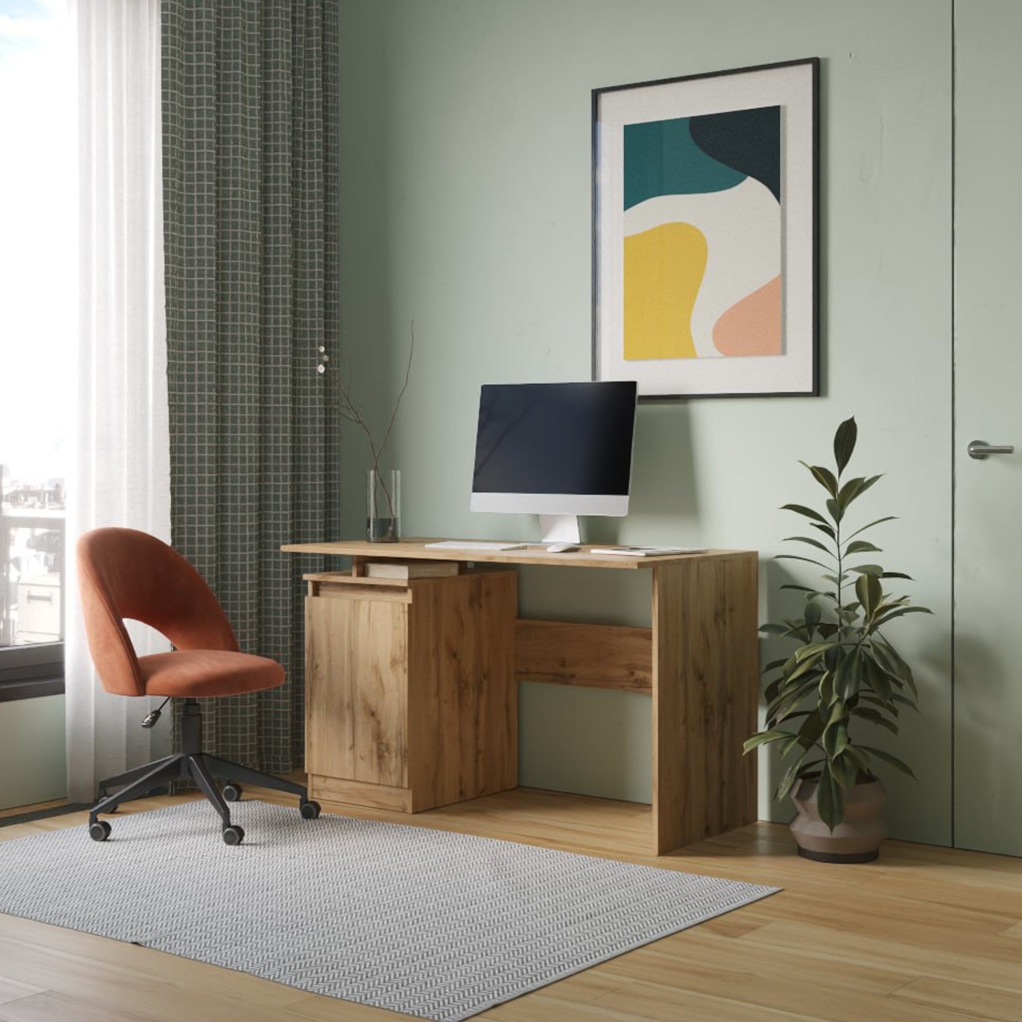 Dank des geräumigen Seitenfachs finden alle Dokumente und Zubehör ihren Platz, und die großzügige Oberfläche bietet problemlos Platz für einen Monitor, eine Lampe oder Ihre Lieblingsdekorationen.