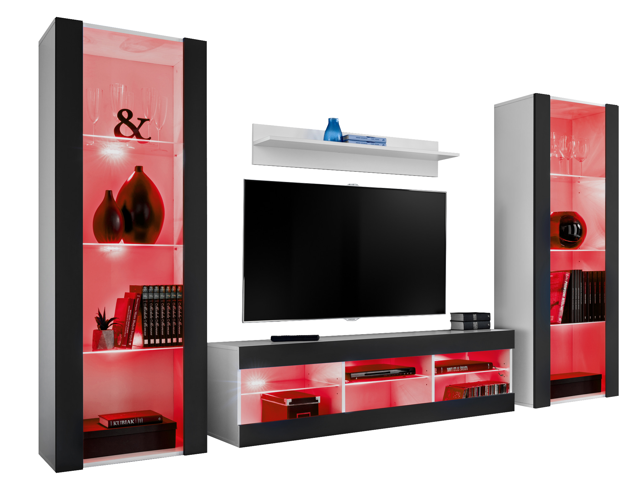 Tivoli Grande RTV Möbel Set, Schwarz/Weiß RGB LED Beleuchtung