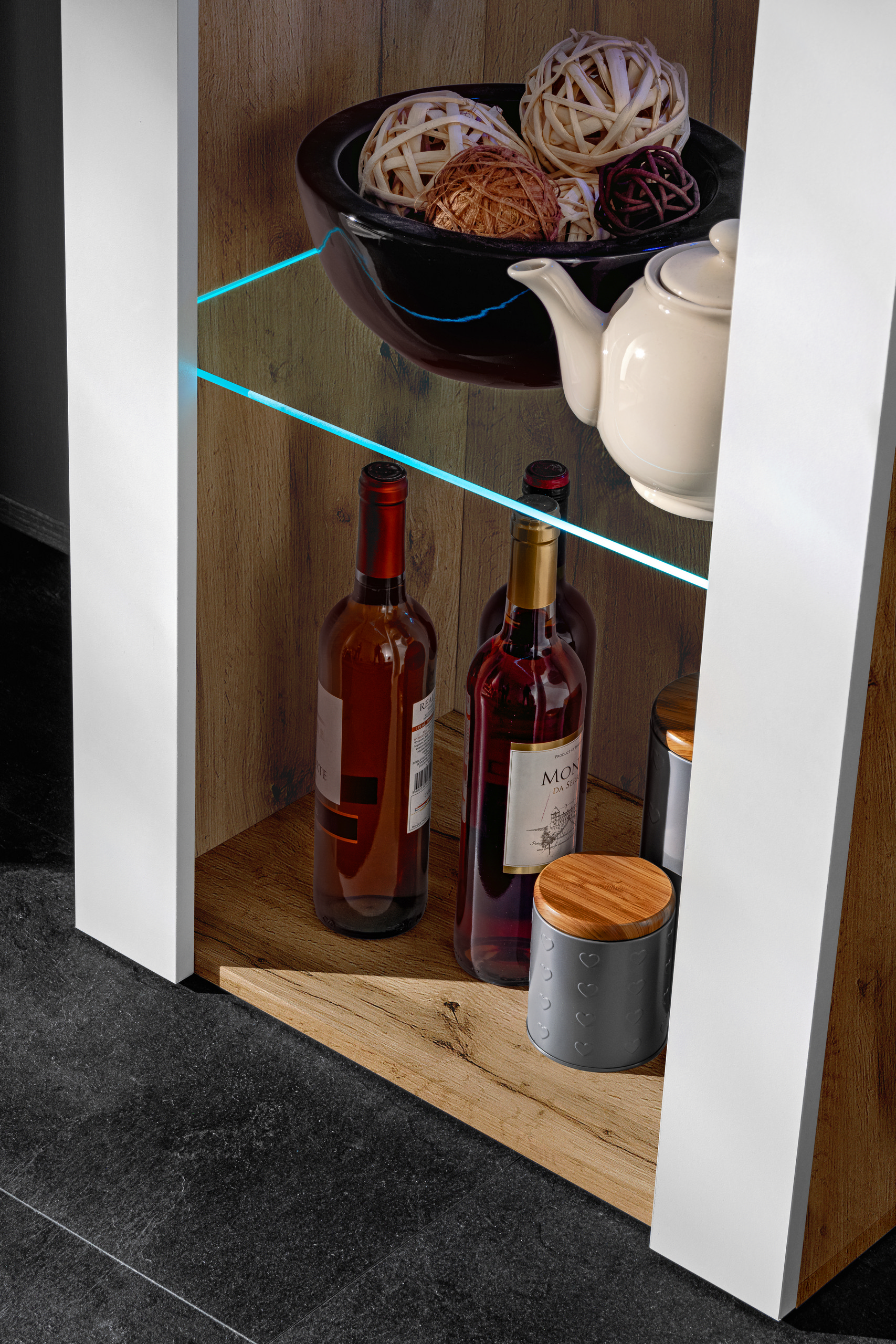 MÖBEL MIT LED-BELEUCHTUNG: Wählen Sie ein Möbelstück, das Ihnen und Ihren Gästen gefällt. Die Glasböden und die optionale LED-Beleuchtung verleihen Ihrer Einrichtung Eleganz.