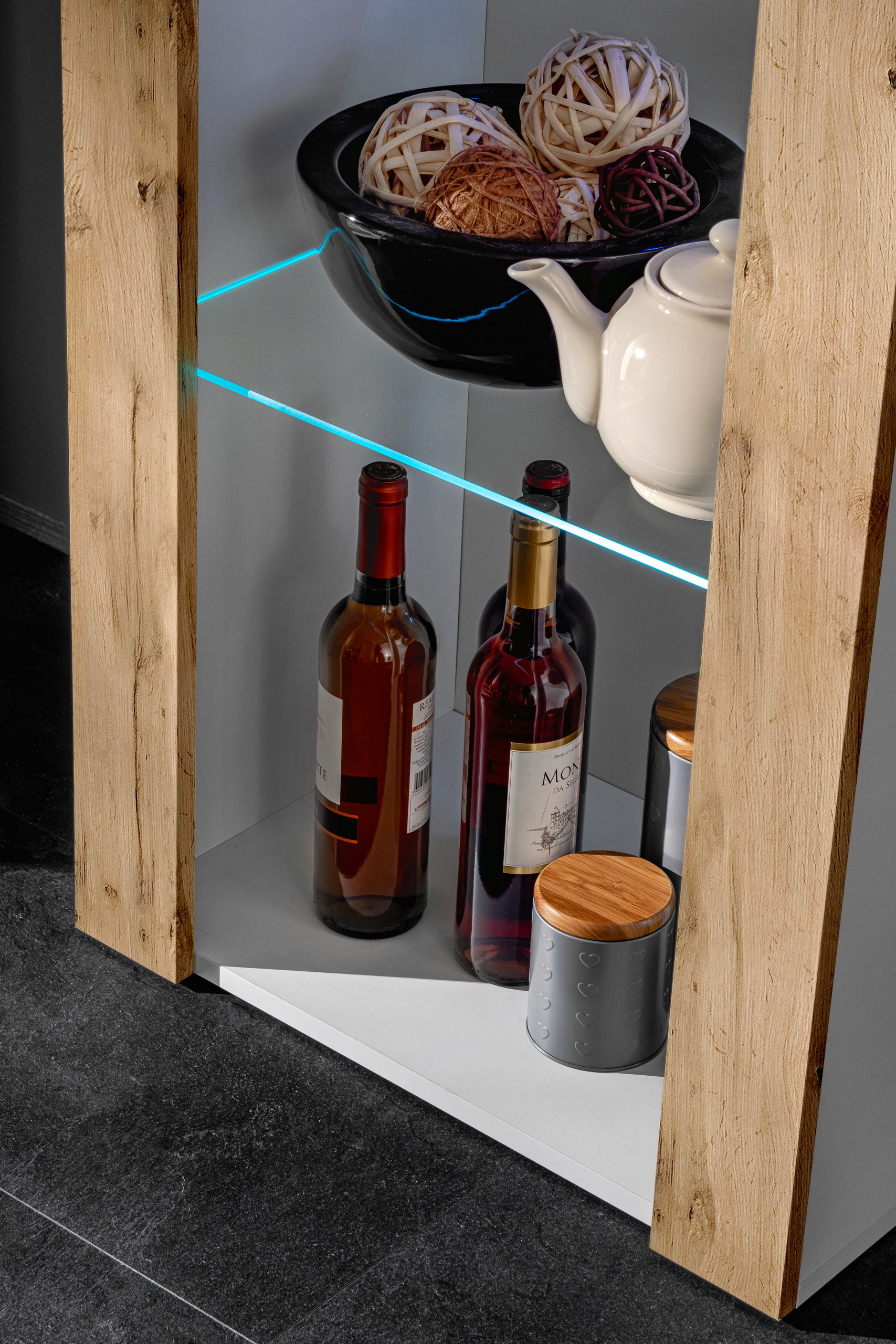 MÖBEL MIT LED-BELEUCHTUNG: Wählen Sie ein Möbelstück, das Ihnen und Ihren Gästen gefällt. Die Glasböden und die optionale LED-Beleuchtung verleihen Ihrer Einrichtung Eleganz.