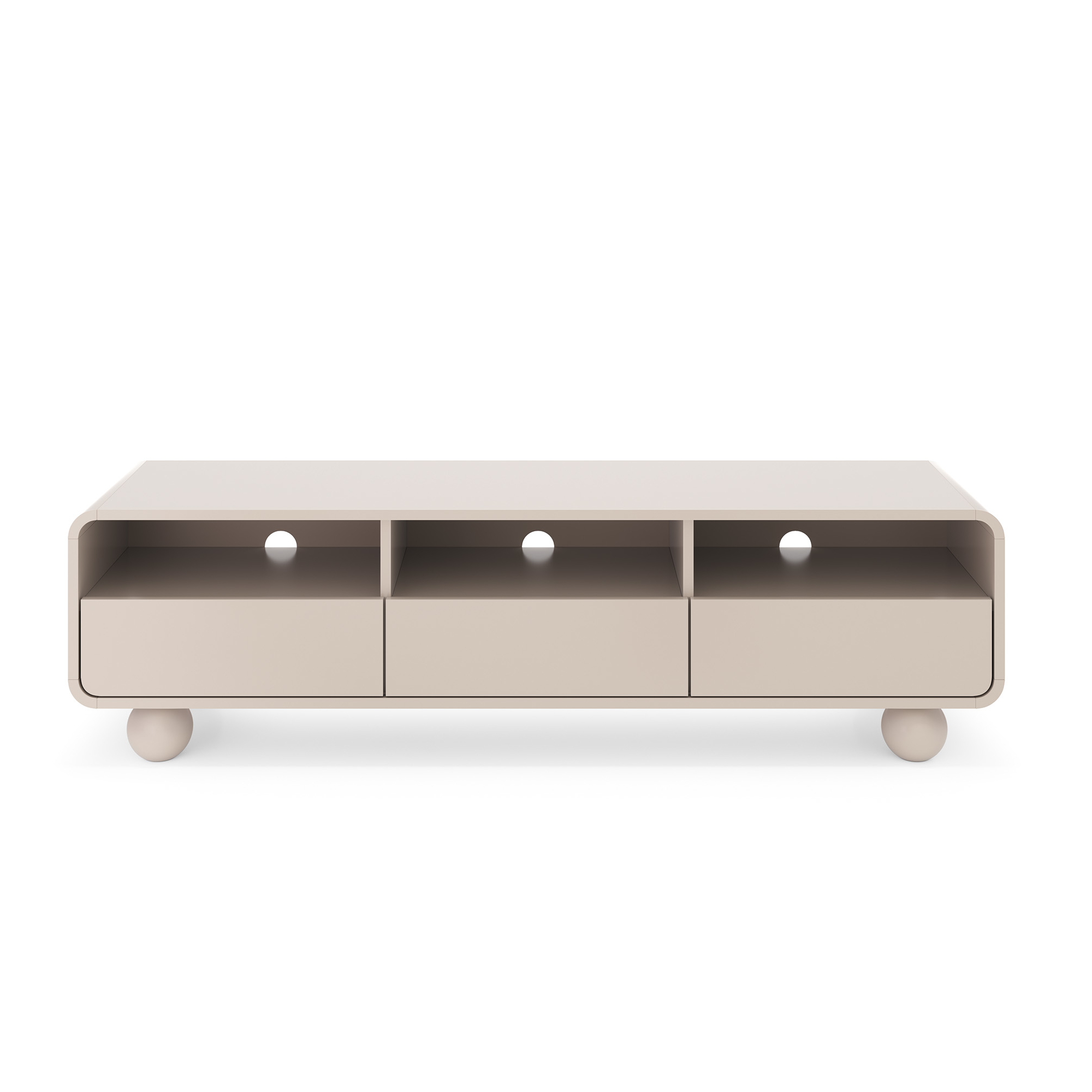 Suchen Sie ein Möbelstück, das nicht nur praktisch, sondern auch Ihr Interieur schmückt? Der TV-Schrank KAMLOOPS 160 cm ist ein Vorschlag, der für Liebhaber minimalistisch, aber gleichzeitig stilvoller Arrangements geschaffen wurde. Dank seiner schlanken Form und neutralen Farbgebung in Kaschmirfarbe fügt er sich perfekt in moderne Wohnzimmer und Tagesräume ein und schafft eine zeitlose und harmonische Komposition.