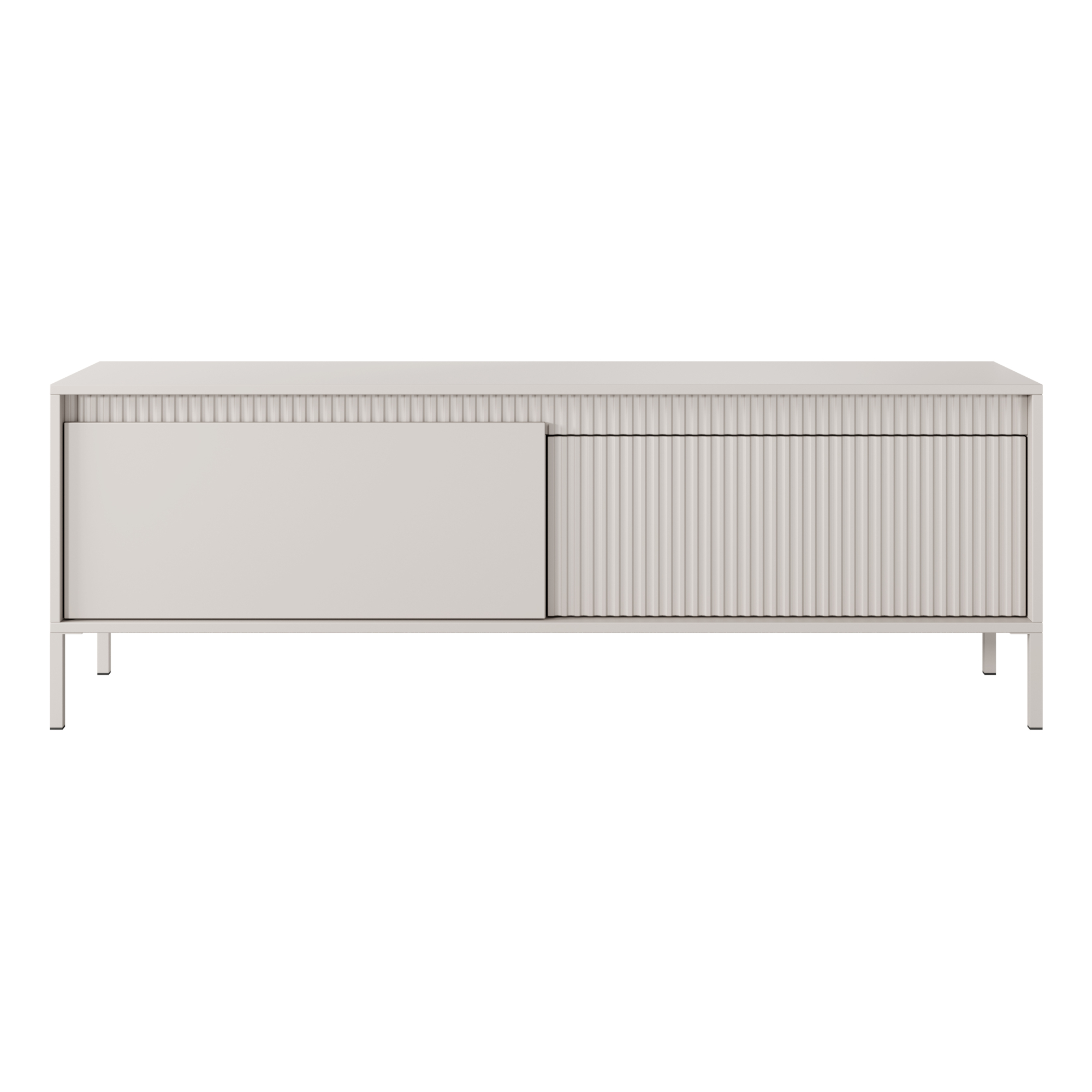 Das grifflose Push-to-open-System unterstreicht den minimalistischen Charakter der Kollektion, während farblich passend lackierte Metallfüße dem Gesamtbild eine optische Leichtigkeit verleihen. Durchdachte Innenaufteilungen bieten praktischen Stauraum, sodass sich die Kollektion SELBU ideal für Wohnzimmer, Schlafzimmer, Essbereich oder den Wohnraum eignet.