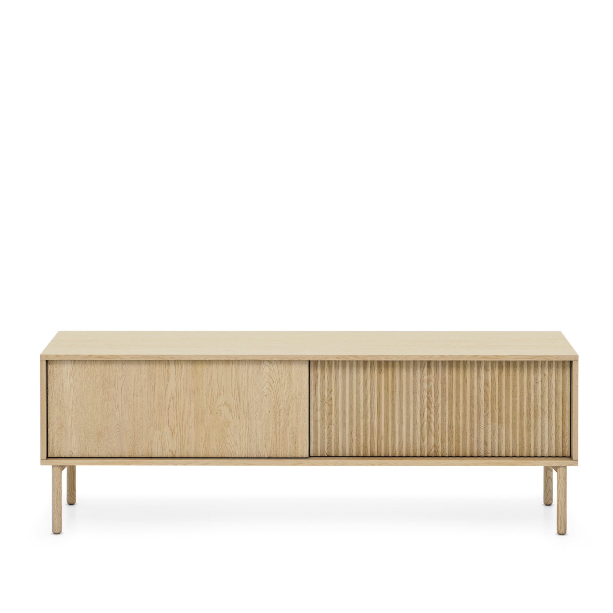 Ein markantes Detail der Kollektion sind die geriffelten MDF-Fronten, die den Möbeln eine dezente декоративność und einen modernen Rhythmus verleihen. Ergänzt werden sie durch glatte, leicht hervorstehende Fronten, die eine stimmige und elegante Gesamtkomposition schaffen. Das grifflose Push-to-open-System unterstreicht den minimalistischen Charakter und sorgt für eine klare, reduzierte Linienführung.