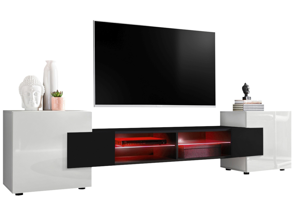 TV Schrank Merano, Weiß/Schwarz RGB LED Beleuchtung