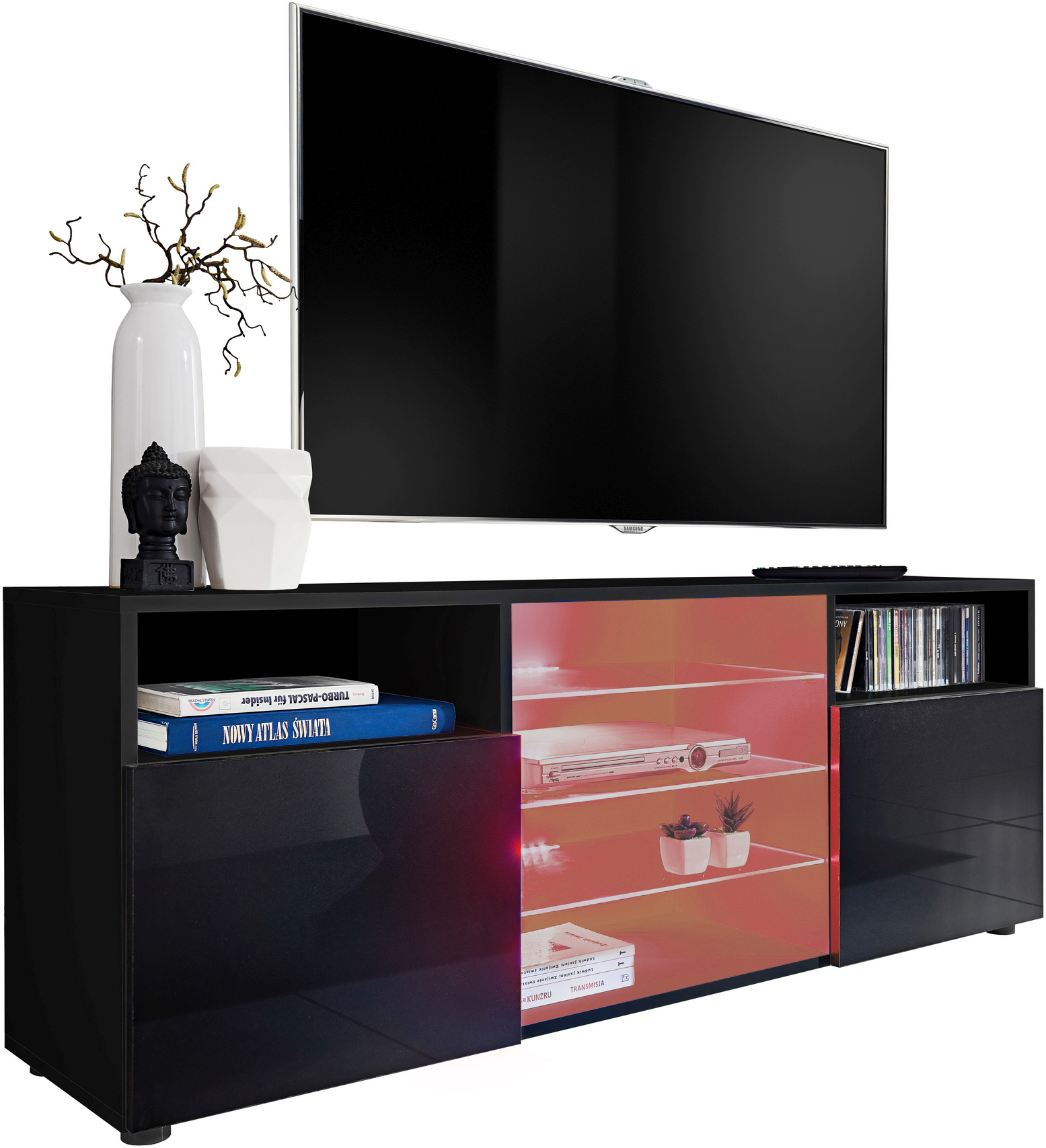 Urbino RTV Schrank, Schwarz/Schwarz RGB LED Beleuchtung