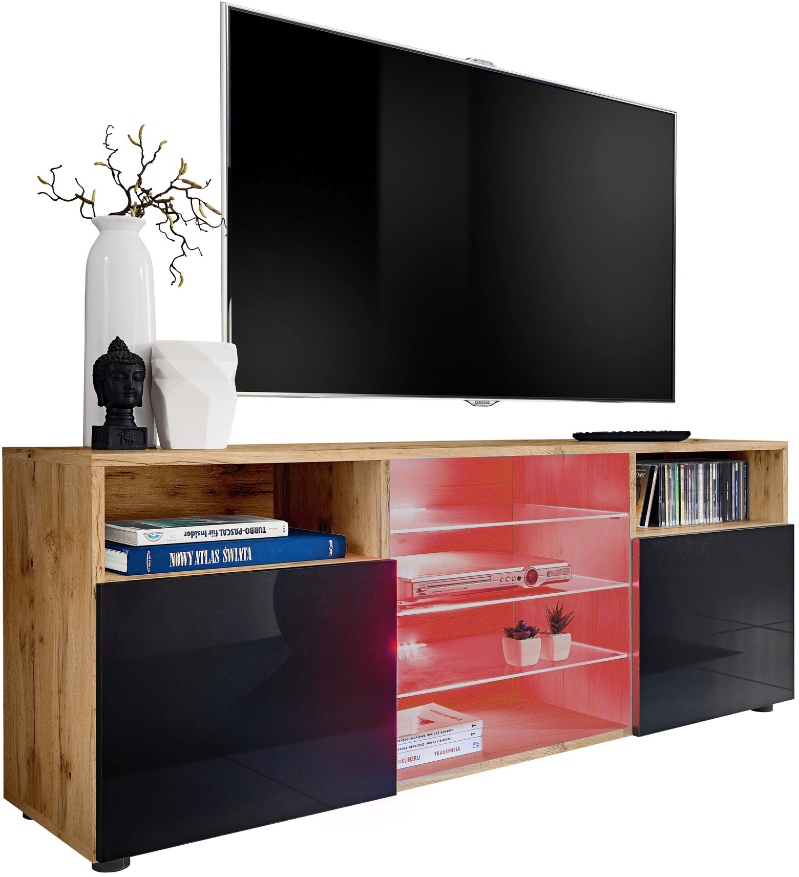 Urbino RTV Schrank, Schwarz/Wotan RGB LED Beleuchtung