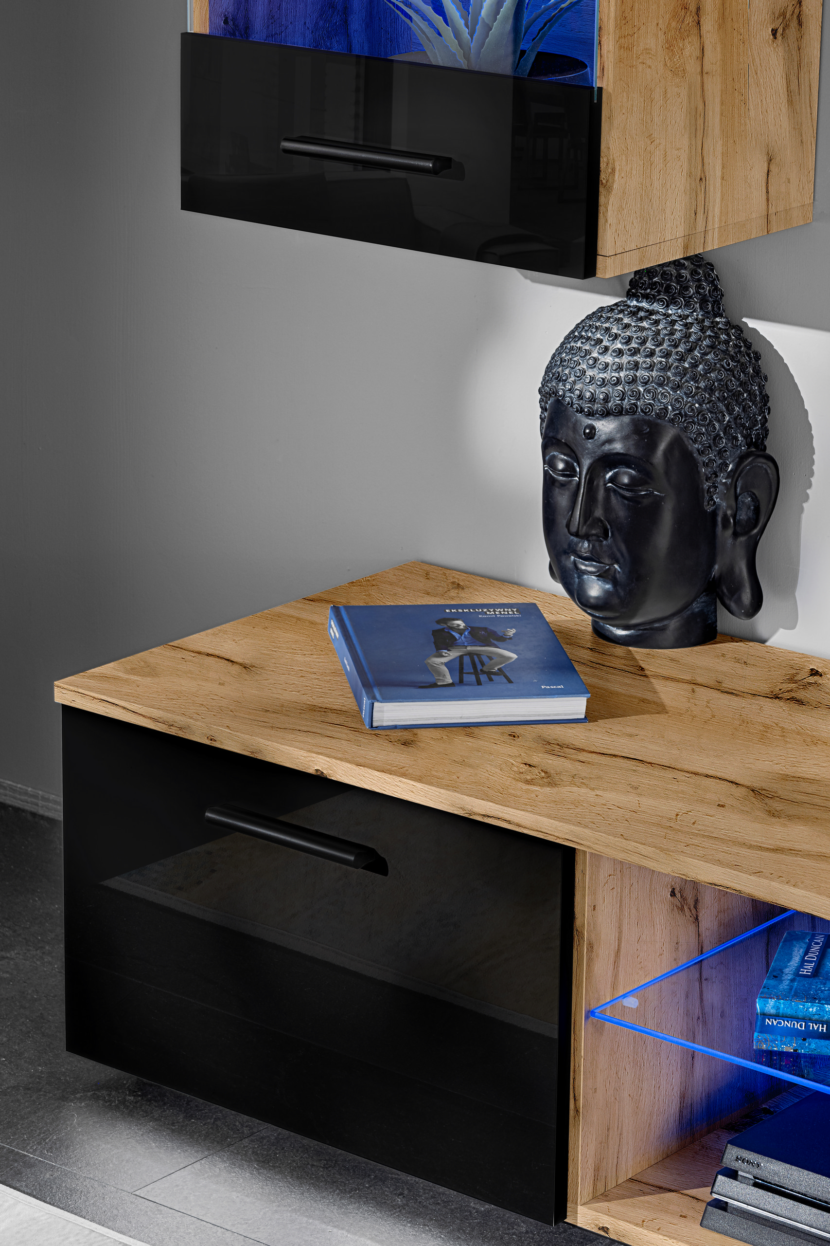 Varallo RTV Möbel Set, Schwarz/Wotan RGB LED Beleuchtung
