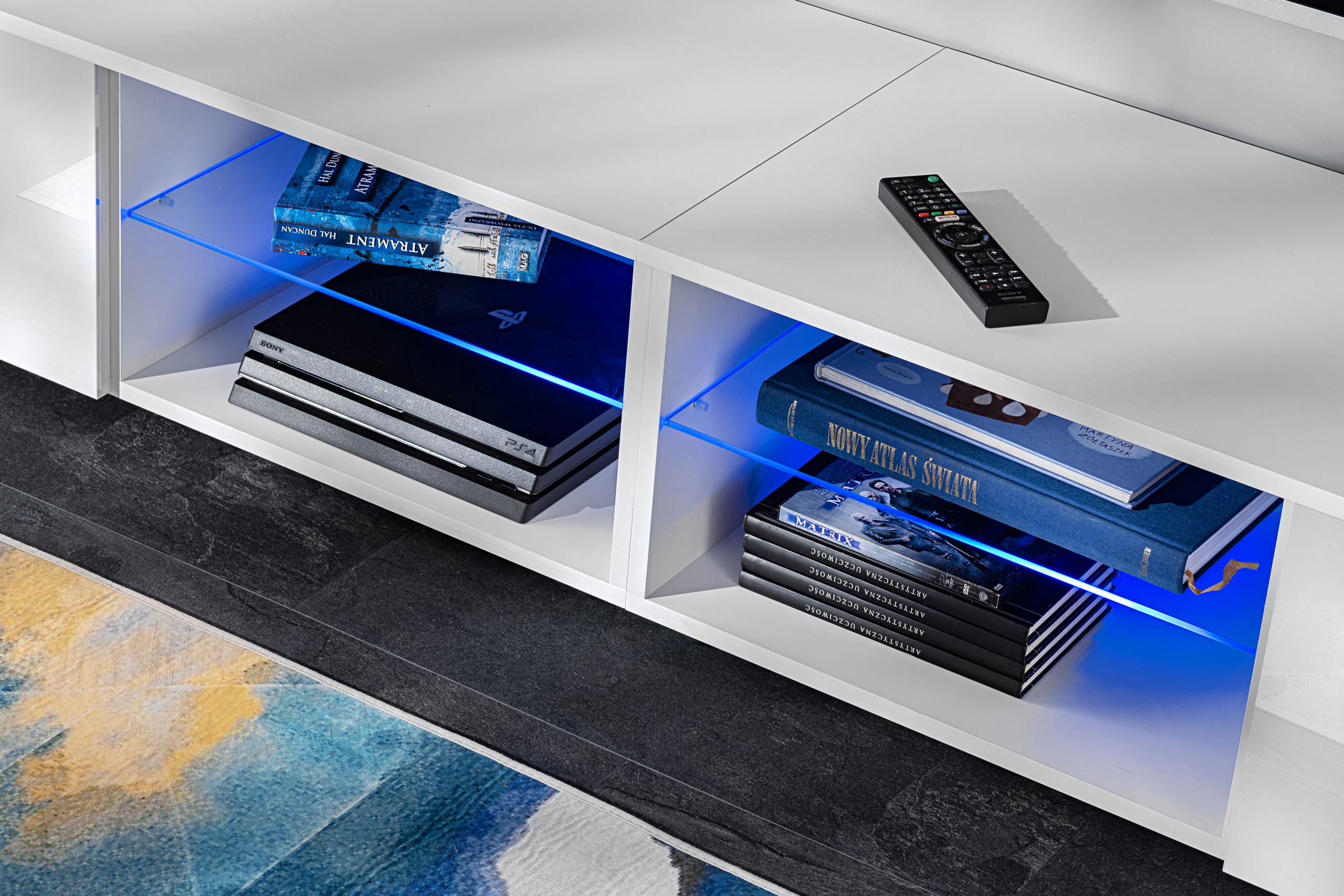 Varallo RTV Möbel Set, Weiß/Weiß RGB LED Beleuchtung