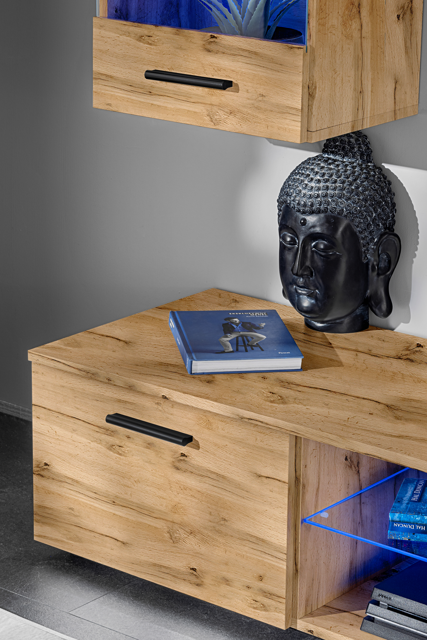 Varallo RTV Möbel Set, Wotan/Wotan LED Beleuchtung Blau