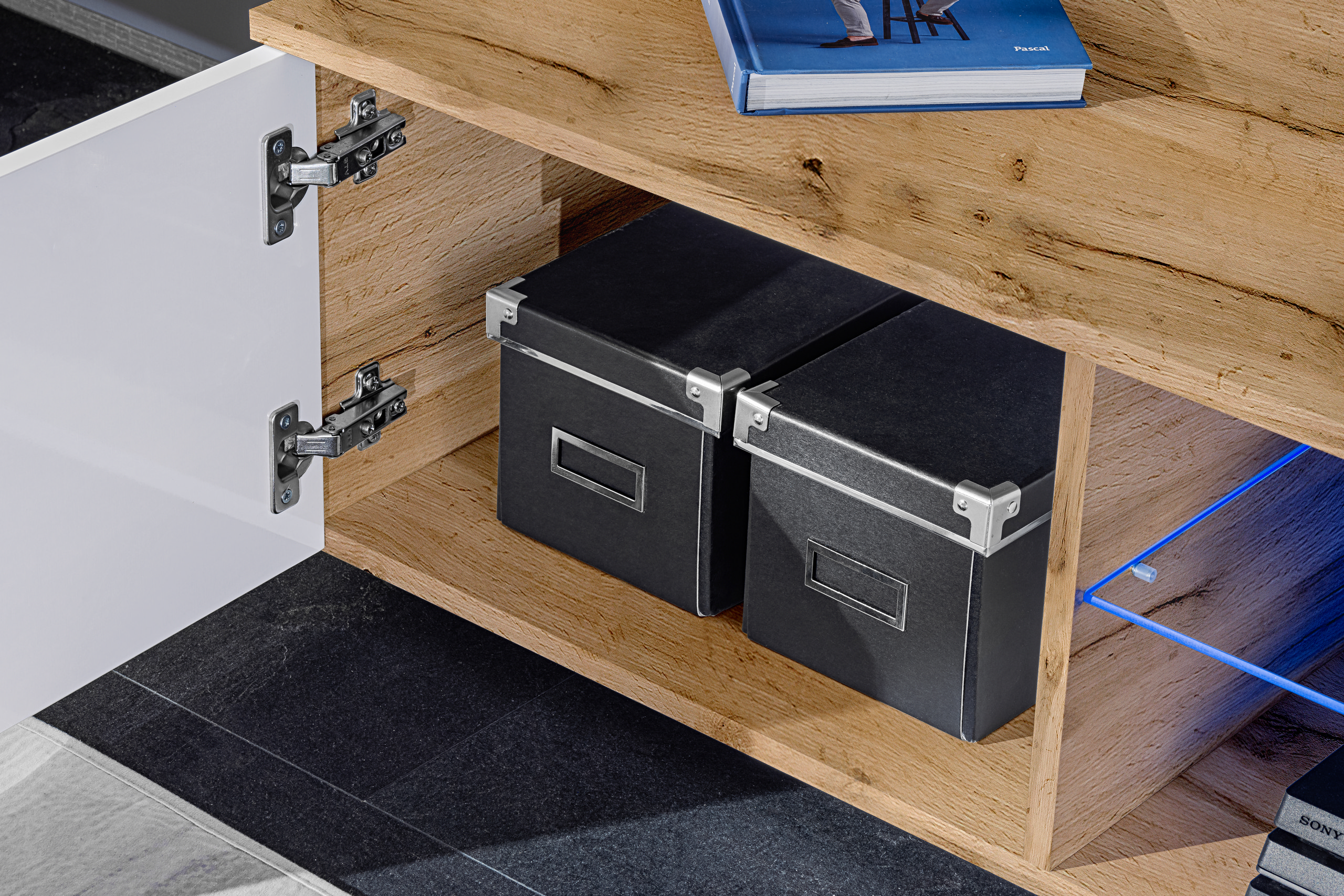 Varallo TV Möbel Set, Weiß/Wotan RGB LED Beleuchtung