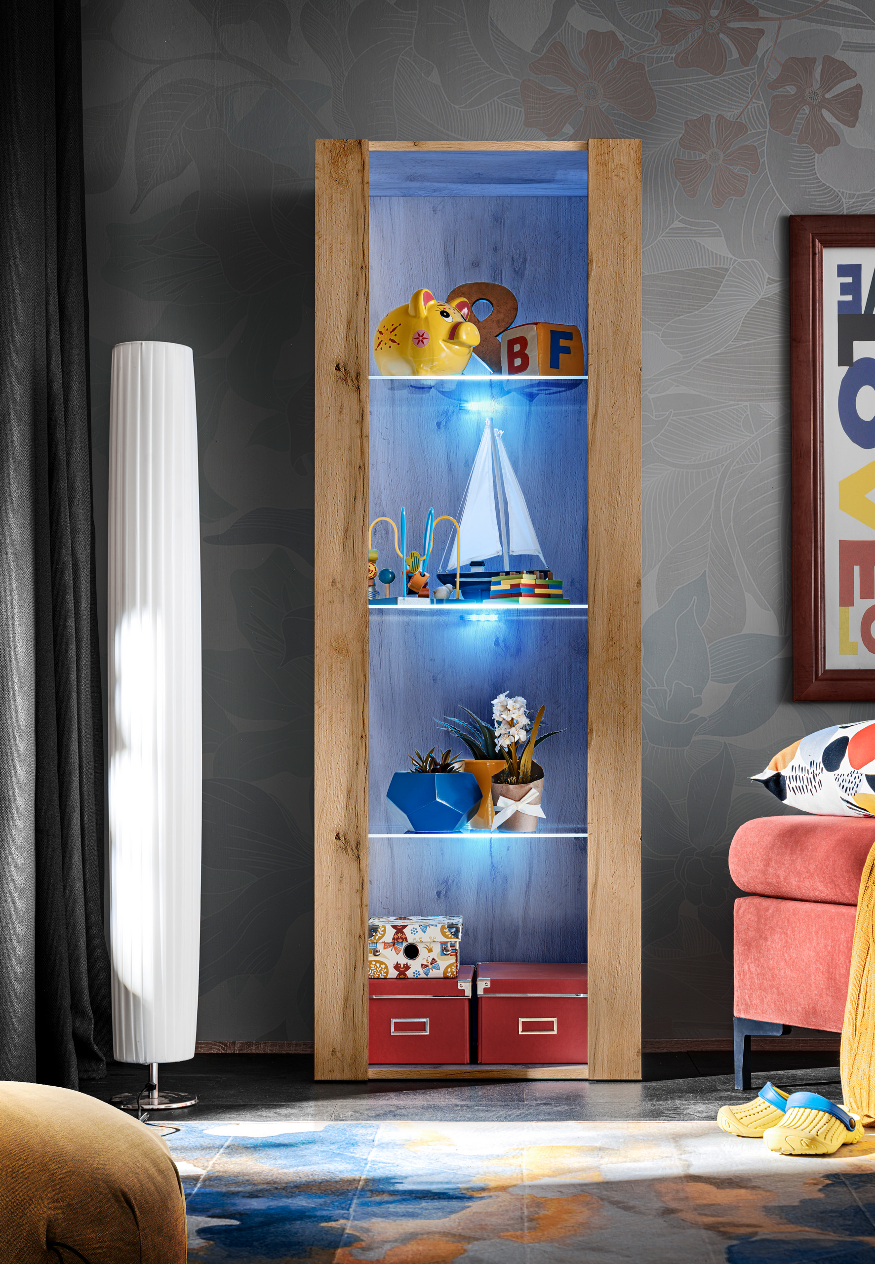 Tivoli Schrank, Wotan/Weiß LED Beleuchtung Blau