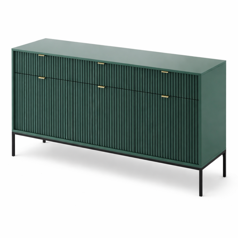 Kommode NANAIMO KSZ154 – Grün – Goldene Griffe – 3 Schubladen – Breite 154 cm, Höhe 83 cm, Tiefe 39 cm