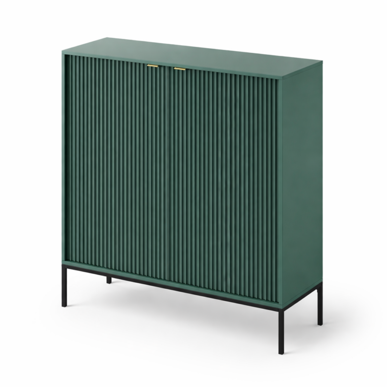 Kommode NANAIMO K104 – Grün – Goldene Griffe – Breite 104 cm, Höhe 125 cm, Tiefe 39 cm